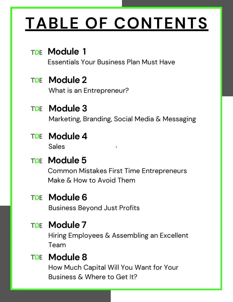 A four-week program that will teach you an eight-module proprietary program, including the TDE workbook. This program is a great opportunity to meet people, network with fellow founding members, build partnerships and brainstorm with like-minded people.